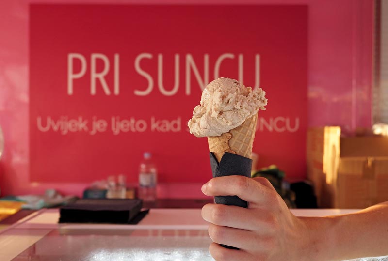 Pri suncu by Nina Šarić nudi homemade luxury gelato za kojeg proizvode svoju sladolednu bazu. Iz bogatog asortimana izdvajaju bestsellere - čokolada,