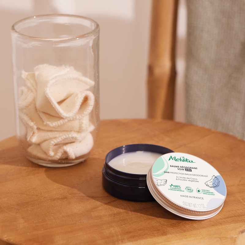 Novi 24-satni dezodorans u balzamu također je formuliran bez aluminijevih soli i alkohola. Ovaj certificirano organski dezodorans nudi dugotrajnu zaštitu od neugodnih mirisa, istovremeno regulirajući proces znojenja. Bogat biljnim prahom koji ima moć upijanja vlage i omekšujućim svojstvima organskog kokosovog ulja, ovaj dezodorans pruža dugotrajan osjećaj svježine. Sadrži 100% prirodnih sastojaka i 20% organskih sastojaka.