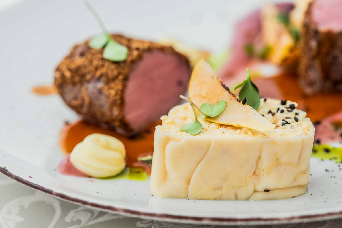 specijalitetima kao što je jesetra s raviolima od začinskog bilja Pavus, buerre blanc
