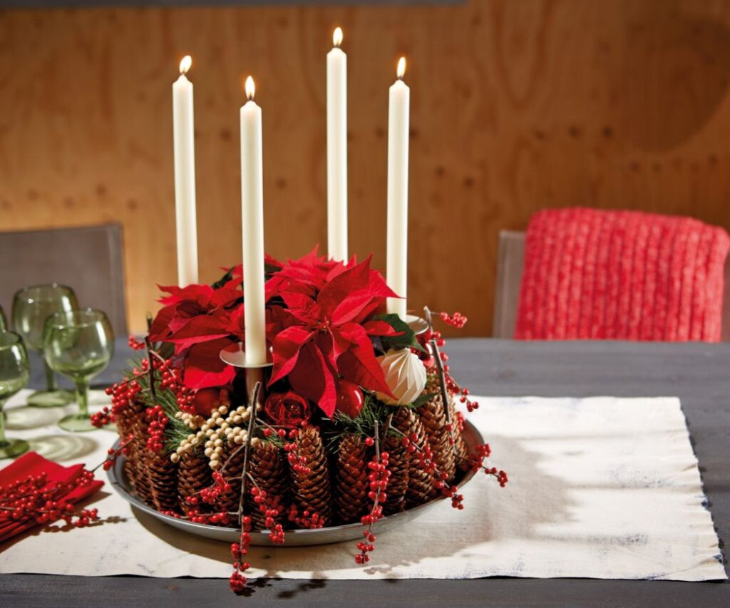 na blagdanski stol, dok svijeće i prirodni detalji upotpunjuju elegancijom.