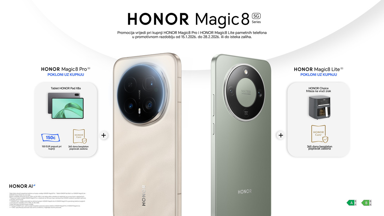 Umjesto spontanošću, povedite se funkcionalnošću i odaberite poklon ne samo za voljenu osobu, nego i za sebe. Upravo u tome može vam pomoći HONOR s ekskluzivnom ponudom u sklopu promocije dva nova sjajna uređaja HONOR Magic 8 serije. Svi koji se odluče na kupnju uređaja HONOR Magic8 Pro, na poklon dobivaju tablet HONOR Pad X8a i odličan popust od 150 eura, dok će kupci uređaja HONOR Magic8 Lite, imati prilike dobiti HONOR Choice fritezu na vrući zrak. Ako tražite znak za idealan poklon za Dan zaljubljenih, možda ste ga upravo pronašli.