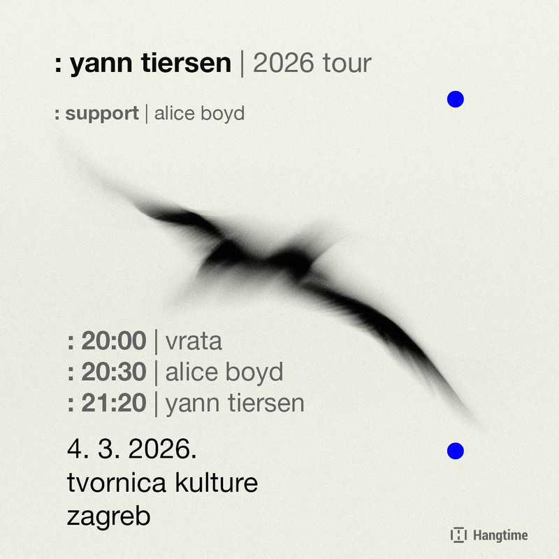 Jedan od najupečatljivijih europskih autora suvremene instrumentalne glazbe, Yann Tiersen, vraća se u zagrebačku Tvornicu kulture u srijedu, 4. ožujka, gdje će promovirati novi album “Rathlin from a Distance | The Liquid Hour”. Njegova glazba već desetljećima briše granice između klasične glazbe, minimalizma, elektronike i filmske atmosfere, a svaki koncert pretvara u vrlo snažno i specifično iskustvo u što se zagrebačka publika već mogla uvjeriti. Večer će otvoriti britanska kantautorica, umjetnica zvuka i audio producentica Alice Boyd. Ulaznice po pretprodajnoj cijeni od 45 eura dostupne su putem Hangtime weba i u Dirty Old Shopu, dok će na dan koncerta iznositi 50 eura.