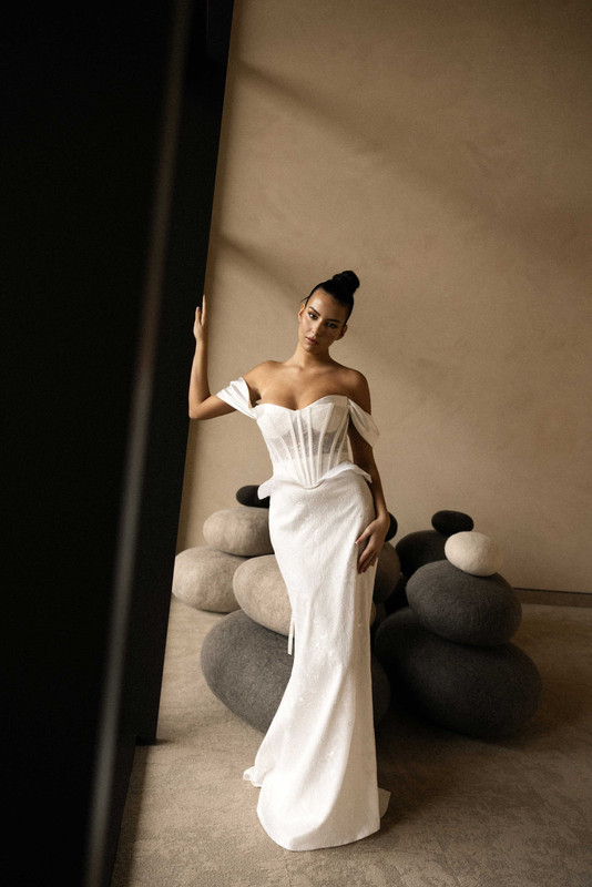 Vizualni identitet kolekcije inspiriran je minimalističkom arhitekturom i igrom svjetla i sjene. Neutralni tonovi interijera i čiste linije prostora savršeno prate estetiku haljina koje djeluju gotovo poput modnih skulptura.